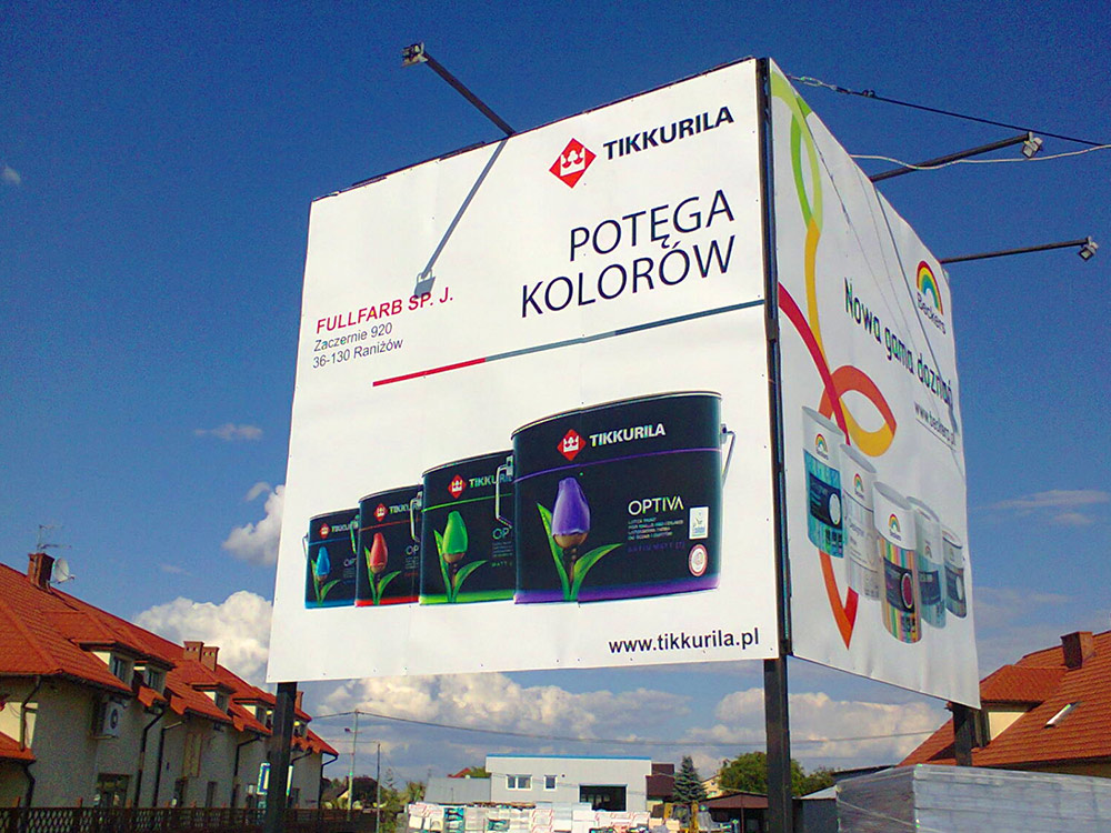 Druk wielkoformatowy to technologia stosowana do tworzenia reklam o bardzo dużej powierzchni, w tym tablic, plakatów i banerów, oraz materiałów reklamowych do stojaków, potykaczy, kasetonów i roll-upów. Promocja przy użyciu tej formy reklamy jest wyjątkowo efektywna, ponieważ wydruk wielkoformatowy ze względu na swoje rozmiary nigdy nie pozostaje niezauważony, a dzięki temu, że łatwo przykuwa uwagę odbiorców, skutecznie dociera z przekazem do potencjalnych klientów.